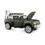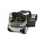 Alle Türen, die Heckklappe (Akkufach) und die Motorhaube mit Motorattrappe sind funktional und lassen sich öffnen. Der Innenraum ist detailliert ausgestattet z.B. mit Sitzen, Lenkrad uns Schalthebel. Der bereits fertig angebaute Dachgepäckträger kann problemlos für Zubehörteile wie z.B. Reservekanister, Erste-Hilfe-Boxen und Traktionsbleche o.ä. genutzt werden. Die handliche Fernsteuerung sendet im störungssicheren 2,4GHz Band. Alle Fahrfunktionen sind proportional.